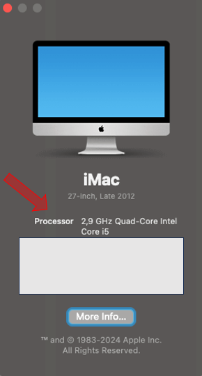 🪟 Intel 프로세서가 탑재된 Mac 컴퓨터의 경우 '이 Mac에 관하여' 화면에 '프로세서'라고 표시된 항목이 나타나고, 이어서 Intel 프로세서 이름이 표시됩니다. Intel 프로세서가 탑재된 Mac을 Intel 기반 Mac이라고도 합니다.