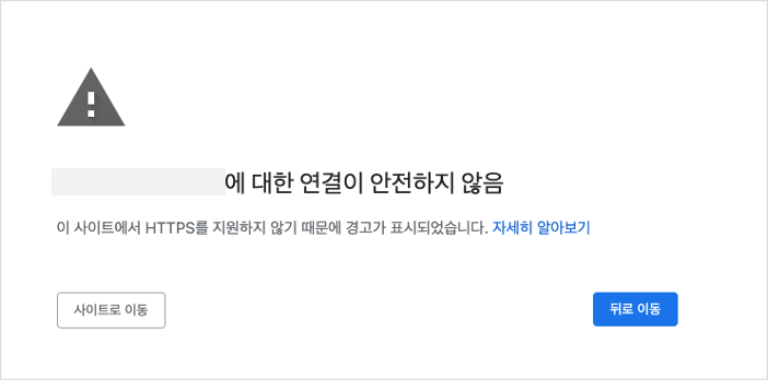 프로토콜 https를 지원하지 않는 특정 사이트에 접속하려고 하면 이런 메세지를 보안 아이콘을 통해서 확인할 수 있습니다.