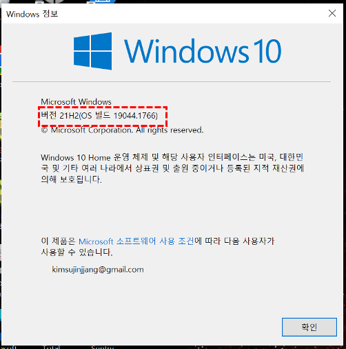 3. Windows 버전 창에서 현재 사용중인 OS의 버전을 확인합니다.