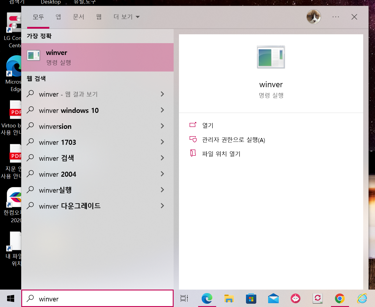 2. 입력창에 "winver" 또는 "버전" 이라고 입력합니다.