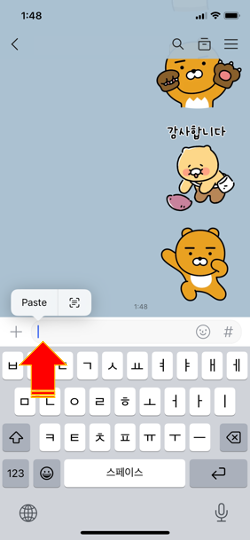아직, 문자입력창에 붙여넣기 된 상태가 아닙니다.