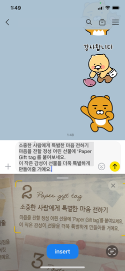 텍스트를 선택하고 입력창으로 삽입할 수 있습니다.